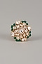 Featuring a gold finish adjustable ring studded with uncut zircons, pink beads and synthetic emerald stone, set in mixed metal. Ideal for evening events, or festive gatherings, this ring ensures you radiate refined elegance and sophistication.