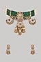 Gold Finish Uncut Zircon & Green Beaded Temple Choker Necklace Set