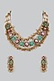 Gold Finish Uncut Zircon & Green Semi-Precious Stone Layered Necklace Set