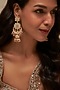 Featuring a pair of gold finish floral jhumka earrings studded with uncut zircons and pearls, set in mixed metal. Ideal for festive occasions or wedding celebrations.