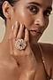 Featuring a gold finish adjustable ring studded with uncut zircons and synthetic emerald stone, set in mixed metal. Ideal for evening events, or festive gatherings, this ring ensures you radiate refined elegance and sophistication.