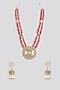 Micro Gold Finish Ruby Stone & Beaded Long Mala Necklace Set