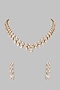 Featuring a two tone finish necklace studded with swarovski zircon, set in 92.5 sterling silver. It is paired with a matching pair of earrings. Ideal for adding a regal touch to wedding celebrations, festive soirees or grand receptions.