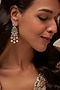 Featuring a pair of victorian finish dangler earrings studded with uncut zircons and synthetic emerald stone, set in mixed metal. Ideal for festive occasions or wedding celebrations.