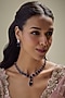 Featuring a white finish necklace studded with synthetic blue sapphire stones, set in mixed metal. It is paired with a matching pair of earrings. Ideal for festive occasions or wedding celebrations.