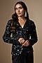 Featuring a black short jacket in tulle base with hand embroidery. It is paired with satin organza draped skirt. Accentuate it with statement jewellery and heels for a cocktail or destination wedding.