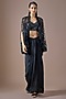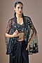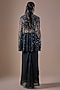 Featuring a black cape in satin and tulle base with mirror embroidery. It is paired with an embroidered blouse and a draped skirt. Accentuate it with zircon jewellery, embellished heels, a sleek bun and a potli bag for festive occasion, sangeet or cocktail soirees.