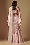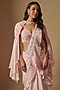 Featuring a blush pink draped saree in satin organza and tulle base with hand embroidery. It is paired with a hand embroidered blouse and a cape. Style it with statement earrings and heels for any festive occasion or sangeet ceremony.