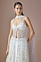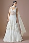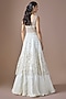 Featuring an ivory lehenga in satin and tulle base. It is paired with an embroidered blouse and a jacket having latkans detailing. Accentuate it with zircon jewellery, embellished heels, a sleek bun and a potli bag for a sangeet, reception or cocktail soirees.