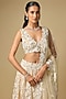 Featuring an ivory lehenga in tulle base with hand and machine embroidery. It is paired with a blouse and a dupatta. Accentuate it with delicate diamond jewellery, a shimmering clutch and elegant heels for a stylish ensemble, ideal for engagement ceremonies, reception nights or glamorous evening celebrations.