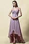 Featuring a lavender asymetrical gown in georgette base with hand embroidery. It is paired with matching modal satin dhoti pants.