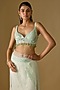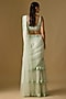 Featuring a mint pre-draped saree in satin organza base with hand embroidery. It is paired with a tulle blouse. Style with layered jewelry and neutral heels to balance the look, Ideal for sangeet, mehendi or cocktail ceremonies.