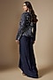 Featuring a navy blue short jacket in tulle base with hand embroidery. It is paired with satin organza draped skirt. Accentuate it with statement jewellery and heels for a cocktail or destination wedding.