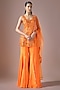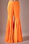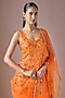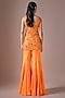 Featuring an orange short kurta in satin and tulle base with hand embroidery. It is paired with sharara pants and an organza embroidered dupatta. Accentuate it with zircon jewellery, embellished heels, a sleek bun and a potli bag for festive occasion, sangeet or cocktail soirees.