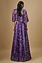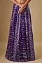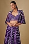 Featuring a purple jacket in satin organza, tulle and chinon butter crepe base with hand and machine embroidery. It is paired with an embroidered blouse and a lehenga. Accentuate it with statement jewellery and heels for a bridal look.