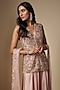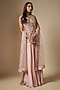 Featuring a rose gold jacket in tulle base with hand embroidery. It is paired with satin organza flared pants and a dupatta. Accentuate it with statement jewellery and heels for a bridesmaid or wedding ceremony.