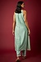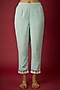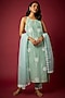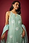Featuring a sage green kurta in silk base with hand and machine embroidery. It is paired with muslin cigarette pants and an organza embroidered dupatta. Style it with statement earrings and heels for a festive look.