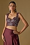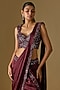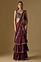 Featuring a wine pre-draped saree in satin and tulle base with hand and machine embroidery. It is paired with a floral embroidered blouse. Style with layered jewelry and neutral heels to balance the look, Ideal for sangeet, mehendi or cocktail ceremonies.