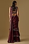Wine Satin & Tulle Hand Embroidered Pre-Draped Saree Set