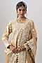 Featuring a beige kurta in pure tissue fabric base with a round neckline and embroidery. It is paired with pants and a dupatta. Accentuate it with statement earrings and elegant heels for a chic look, perfect for festive gatherings, sangeet ceremonies, family celebrations or cultural events.