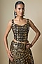 Featuring a black saree in pure georgette base with sequins work. It is paired with an embroidered blouse and a crepe underskirt. Accentuate it with zircon dangler earrings, a potli bag and metallic heels. ideal for a wedding, sangeet or engagement ceremony.