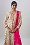 Featuring an ivory flared anarkali in blend georgette base with embroidery. It is paired with pants and a dark pink dupatta. Accentuate it with statement earrings and elegant heels for a chic look, perfect for festive gatherings, sangeet ceremonies, family celebrations or cultural events.