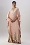 Featuring a peach kaftan in georgette base with sequins embroidery. It is paired with an inner. Accentuate it with statement earrings and elegant heels for a chic look, perfect for festive gatherings, sangeet ceremonies, family celebrations or cocktail parties.
