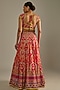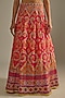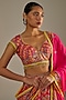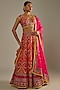 Featuring a pink lehenga in blended georgette base with multi-coloured resham embroidery. It is paired with a matching choli and a dupatta.