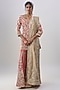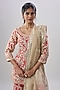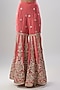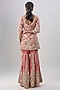 Featuring a pink short kurta in organza base with gota embroidery. It is paired with sharara pants and a banarasi net dupatta. Accentuate it with statement earrings and elegant heels for a chic look, perfect for festive gatherings, sangeet ceremonies, family celebrations or cultural events.