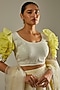 Featuring a yellow lehenga in organza base with scuba detailed applique work. It is paired with a matching choli and a dupatta.