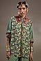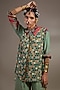 Featuring an ash green shirt in natural crepe base with an embroidered collar, standard sleeves and polka print. Accentuate with pants, minimal jewellery and heels for an evening soiree or a brunch.