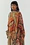 Featuring an ash green sadhavi draped saree in natural crepe base with print and an organza pallu. Perfect for an engagement or mehendi ceremony.