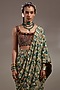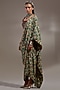 Featuring an ash green draped saree in natural crepe base with print. Accentuate it with a blouse, zircon earrings, strappy heels and a clutch for weddings or festive ceremonies.