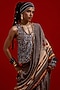 Featuring an ash grey draped saree in italian crepe base with print. It is paired with a crush silk and slub satin embroidered top. Accentuate it with hoop earrings and high boots for a festive or a boho look.