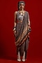 Featuring an ash grey draped saree in italian crepe base with print. It is paired with a crush silk embroidered blouse. Accentuate it with hoop earrings and high boots for a festive or a boho look.