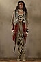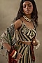 Aseem Kapoor features a black and white blouse in slub satin base with geometrical pattern. It is paired with a sheer silk, mushroom twill printed and embroidered dupatta jacket, including natural crepe printed draped trousers. Accentuate with pants, statement earrings and heels for festive occasions.
