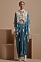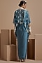 Dull Teal Sheer Silk Tribal Work Jacket Set