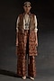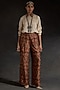 Featuring an ecru beige jacket in mushroom twill base with print. It is paired with a crush silk textured shirt having zari and resham embroidery, including mushroom twill baggy trousers. Style this set with oxidized jewellery, ankle boots and a suede clutch for a complete boho look.