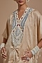 Featuring an ecru short trapeze kurti in crushed silk base with tribal tassels detailing and embroidered yoke. It is paired with a crushed silk textured pleated skirt. Style it with boho jewellery and heels for festive occasions.