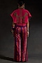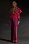 Featuring a hot pink layered structured jacket in natural crepe base with zari, resham thread and beads embroidery. It is paired with a mushroom twill printed trousers. The ensemble strikes the perfect balance between tradition and contemporary finesse, making it an impeccable choice for evening soirees and festive celebrations.