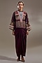 Featuring a jamuni colored jacket in crushed silk base with resham thread embroidery and print. Accentuate it with a dress, zircon earrings, strappy heels and a clutch for evening wear, boho themed or cocktail parties.
