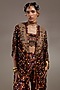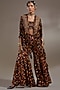 Featuring a jamuni colored jacket in sheer silk base with resham thread embroidery. It is paired with natural crepe printed sharara pants and a cotton silk blouse. Accentuate it with zircon earrings, strappy heels and a clutch for family gatherings or festive ceremonies.