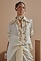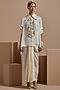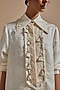 Featuring a mogra white shirt in crushed silk base with lace embroidered collar and yoke. It is paired with a matching pleated skirt. Style it with boho jewellery and heels for festive occasions.