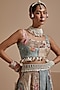 Featuring a multi-colored blouse in mushroom twill base with tassels, beads, resham, embroidery, and mother of pearl. Style it with a skirt or saree, boho jewellery and heels for festive occasions.