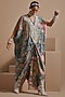 Featuring a multi-colored kaftan jumpsuit in natural crepe base with print, resham bead embroidered yoke, tassel detailing, and a metal zipper back opening. Style it with boho jewellery and heels for festive occasions.