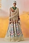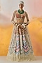 Featuring a multi-colored ombre kalidar lehenga in cotton silk and net base with chevron print and pearl embroidery. It is paired with a natural crepe butta printed bralette and an ivory net dupatta. Accentuate it with pearl jewellery, embellished heels and a clutch for festive celebrations, weddings or sangeet ceremony.
