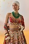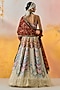 Featuring a multi-colored ombre kalidar lehenga in cotton silk and net base with chevron print and pearl embroidery. It is paired with a natural crepe butta printed bralette and a red sheer silk printed dupatta. Accentuate it with pearl jewellery, embellished heels and a clutch for festive celebrations, weddings or sangeet ceremony.