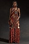 Featuring a multi-colored anti-fitted dress in mushroom twill base with resham thread embroidery and beads work. It is paired with a sheer silk printed and embroidered skirt, including a sheer silk scarf. The ensemble strikes the perfect balance between tradition and contemporary finesse, making it an impeccable choice for festive soirees or pooja ceremony.