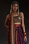 Featuring a multi-colored blouse in dola silk base with tassels detailing, applique, marori and zari embroidery. It is paired with a sheer silk printed skirt and a dupatta. Style this set with oxidized jewellery, block heels and a potli bag , perfect wear for a cocktail or sangeet ceremony.