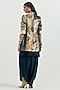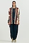 Elevate your wardrobe with this multi-colored open structured jacket, crafted in velvet base. It is adorned with tassel detailing, resham, cowrie shells, beads, and thread embroidery. Style with a dress, boho jewellery, and boots for a bohemian look.